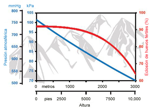 Figura 1. La presión atmosférica y la incubabilidad disminuyen a medida que la altura se incrementa