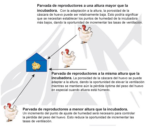 La capacidad potencial de los pollos para alterar la porosidad de la cáscara del huevo presenta algunas oportunidades así como algunos desafíos, si la parvada de reproductores no está a la misma altitud que la incubadora (ver Figura 3).
