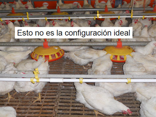 Es esencial en la configuración del galpón con nidos comunitarios, tener 40% slats y 60% cama, con la posición de la línea de bebederos tipo niple a 60 cm del nido. La espesura de la cama debe ser entre 1 y 2 cm.