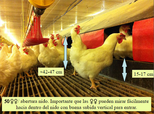 Si a las gallinas reproductoras les gusta el nido, harán todo lo posible para entrar. A fin de cuentas eso es lo más importante.
