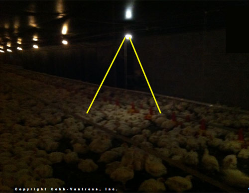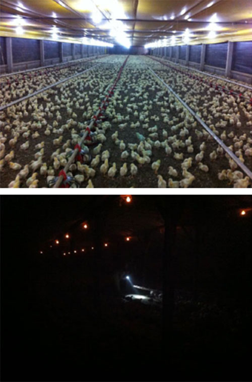 El objetivo es obtener 40 lux in la primera semana de vida de los pollos y capacidad para bajar hasta 3-5 lux al final del ciclo de producción.