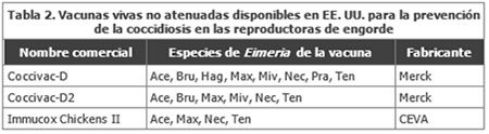 La Tabla 2 muestra las dos vacunas que contienen cepas aptas para infectar tanto a las pollonas como a las gallinas pesadas.