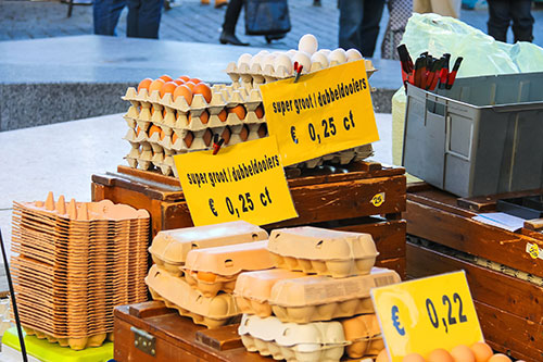 Sin embargo, los avicultores de Rondeel saben el precio que percibirán por huevo producido durante el período de vida del lote; el precio se ajusta solo en respuesta a las fluctuaciones del precio del alimento. El precio actual para los granjeros es de unos 28 céntimos de euro por huevo, que representa un recargo significativo sobre los huevos de gallina criada en piso, según el Sr. Derks, y está entre los precios de los productores de huevos camperos y ecológicos.