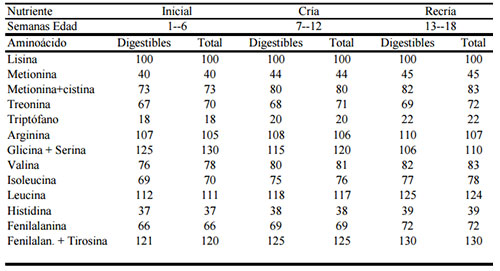 En relación a los valores presentados en la Tabla 3, la lisina fue utilizada como referencia para estimar los requerimientos nutricionales de los aminoácidos. Estos requerimientos fueron establecidos en base a resultados de varios experimentos dosis-respuesta realizados en universidades de Brasil.