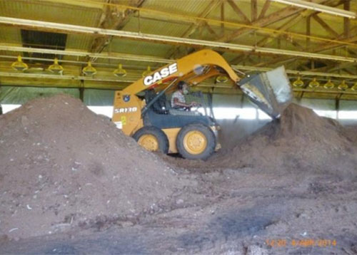 1- Unificar el tamaño de las partículas: Antes de formar la pila es importante que el material posea el mismo tamaño de partícula ya que esto facilita la transferencia del calor a todos los puntos de la masa. Esto se logra pasando sobre la cama diferentes maquinarias, manuales (rastrillo, azada, pala ancha) o autopropulsadas (rotobactor o motocultivador). Otra opción es retira la champa o cascaron (material apelmazado) y apilar solo el material molido. Para formar las pilas lo ideal es usar pala mecánica.