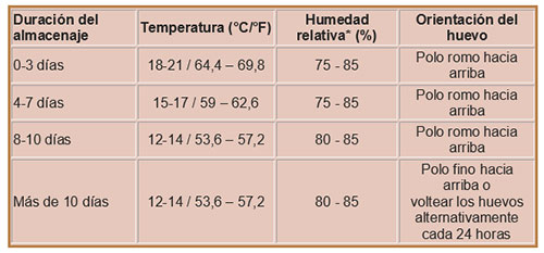 Condiciones climáticas recomendadas durante el almacenaje de los huevos fértiles