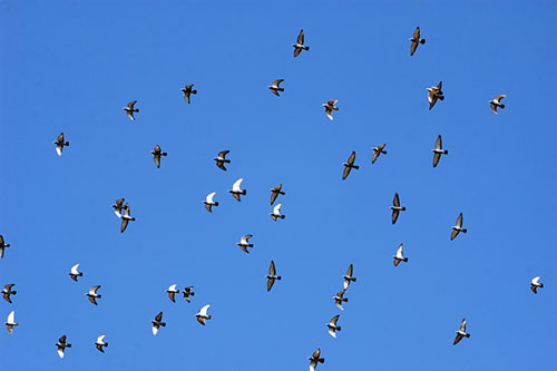 Las palomas (Columba livia) con el entrenamiento adecuado pueden volar hasta 800 km en un día y en tramos cortos, con viento a favor pueden alcanzar velocidades de hasta 100 km por hora. Se les considera atletas de alto rendimiento considerando que pesan entre 350 y 500 g y su consumo de alimento es entre 25 a 35 g por día dependiendo la actividad física. Son aves muy resistentes a la fatiga.