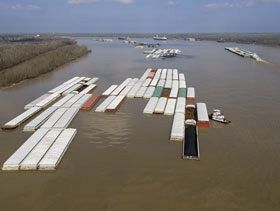 En un diciembre y enero típico, unos 7.000 millones de dólares de productos se transportan en el río Misisipi.