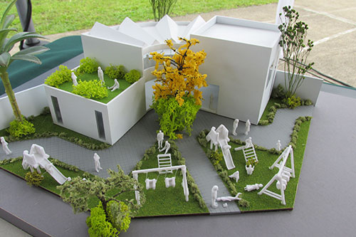 • Ambientalmente amigable: el edificio pretende disminuir la huella ecológica. Mediante un sistema especial se reutilizarán las aguas pluviales en beneficio de las zonas verdes del parque recreativo. En cuanto a los materiales de acabados arquitectónicos, se pretende que generen un bajo mantenimiento preventivo y correctivo y que provengan de reciclaje algunos de sus componentes. El edificio contará con amplios espacios para aprovechar la luz natural. Además las ventanas permiten la filtración de rayos UV que disminuye la cantidad calorífica dentro del edificio, de esta manera reduce a la vez el consumo energético y de aire acondicionado. Se impartirán charlas sobre reciclaje, conciencia ambiental, manejo de residuos de alimentos y otras acciones conjuntas con la comunidad.