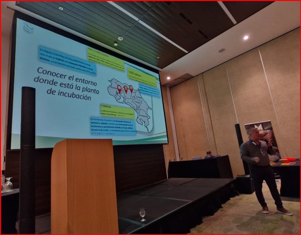 Guillermo Reyes, especialista en Incubación de Aviagen, presentó el tema “Manejo de incubadoras multi-etapas”. Él ofreció recomendaciones para ayudar a los productores a mejorar la incubabilidad y calidad general del pollito. Reyes subrayó la importancia de adaptar estrategias de incubación para el clima local, comprendiendo cómo operan las diferentes marcas de incubadoras, manteniendo control preciso sobre la temperatura y humedad, y prestando particular atención a la fase de nacimiento – un breve pero crítico periodo donde pueden surgir muchos problemas comunes.