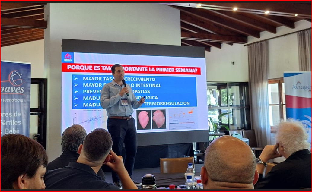 Después de una cálida bienvenida por parte de Daniel Cañizares, presidente de Globoaves Argentina, Rodrigo D’Amen, gerente de Servicios Técnicos para Sud América Excluyendo Brasil (SAEB), expuso sobre la importancia del manejo efectivo del macho. “El adecuado manejo del macho apoya la incubabilidad consistente, el rendimiento uniforme de la parvada, el bienestar del ave, la viabilidad y la eficiencia alimenticia – lo que contribuye a la sostenibilidad”, explicó D’Amen.