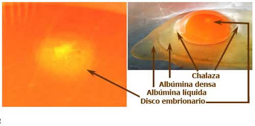 Huevos fértiles: El disco embrionario fertilizado se ve como un anillo: tiene una zona central de color más claro, que albergará al embrión.