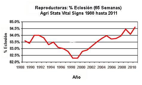 También, desde 1998 la industria ha recuperado el promedio de eclosión a más de 84.5% y no es raro ver incubadoras bien administradas, con buen promedio en el rendimiento de reproductoras de más de 86% de eclosión en la vida de la parvada.