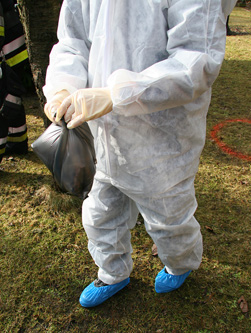Los encargados de eliminar las aves y los transportistas deberían recibir equipo personal de protección apropiado; vestimenta de protección, de preferencia ropa de trabajo y un babero impermeable o batas de cirugía con mangas largas con puños; guantes de exploración desechables; máscaras: el requisito mínimo son máscaras para cirugía con buen ajuste, donde haya máscaras N951 disponibles se recomienda utilizarlas; 2 pares de gafas de protección; botas o cubiertas para el calzado de protección que puedan desinfectarse.