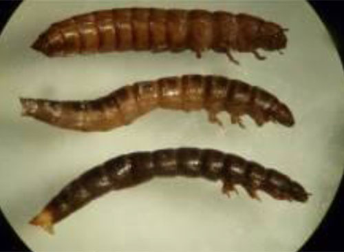 Los escarabajos observados y estudiados correspondieron a: Tenebrio molitor 99.9%, Alphitobius diaperinus 0.1%.