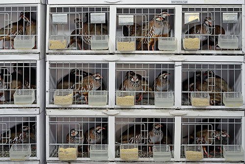 Los perdicultores pueden criar perdices de manera efectiva en jaulas de colonias, pero se debe prestar especial atención a no dejarlas demasiado tiempo en las jaulas, puesto que eso puede afectar a la calidad del plumaje.