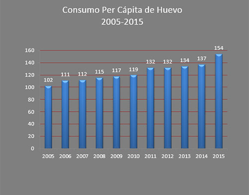 El resultado lo vemos hoy, al ver el 2015 con un crecimiento considerable en consumo de huevos, el cual aumentó de 137 a 154 huevos per cápita. Ha sido un logro y un reto para continuar en el 2016 con este mismo entusiasmo y lograr mejorar el consumo de un producto natural que proporciona tanto alimento al individuo.