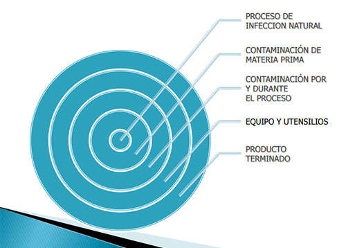 Las posibilidades de contaminación aumentan durante los múltiples procesos de operación en la planta de procesamiento como: corte, escaldado, inyectado, etc.