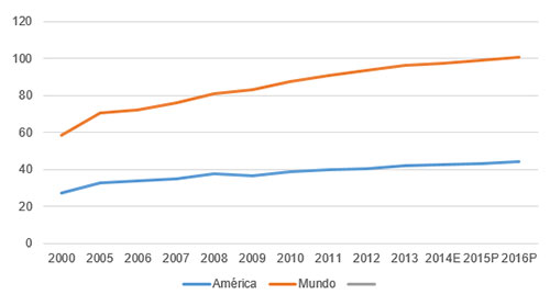La producción mundial de carne de pollo bien podría superar los 100 millones de toneladas en 2016, de las cuales América probablemente contribuya con unos 44.3 millones de toneladas o 44 por ciento (Cuadro 1 y Figura 1).