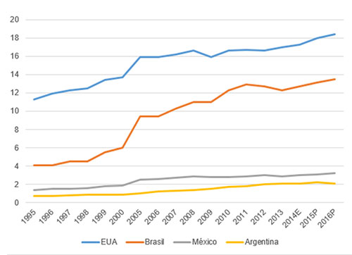 El informe también señala que existen incertidumbres sobre las perspectivas económicas de Brasil, lo cual podría frenar la expansión. Se calcula que entre los cinco años del 2009 al 2014 la producción creció 2.8 por ciento al año, pero por lo menos un pronóstico sugiere que en el 2016 puede crecer tanto como 3 por ciento, a 13.5 millones de toneladas.