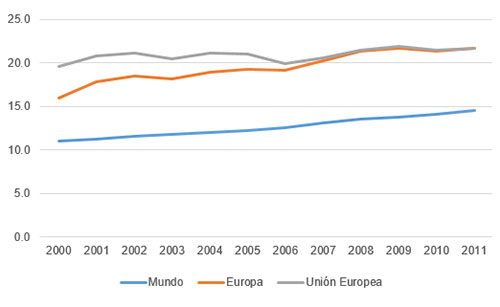 Sin embargo, durante el mismo tiempo, el promedio de toda Europa aumentó casi 6 kg de 15.9 kg a 21.7kg (cuadros 1, 2 y figura 1), siendo latente que el consumo estimado de ave en aquellos países europeos, fuera de la UE, ha aumentado más rápidamente que en aquellos dentro de la comunidad.