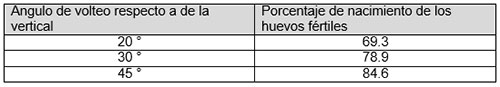 Cuadro 1. Efecto del ángulo de volteo de los huevos