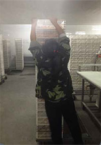 1 - Compruebe que los huevos no hayan rodado a un extremo de la canasta o bandeja - esto es un signo de que la persona que apila está empujando la bandeja con demasiada fuerza.