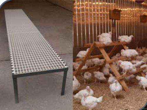 2. Instalar perchas o plataformas a los 28 días de edad. Utilizar el mismo tipo de perchas en las etapas de postura y de levante. El espacio debe ser de 3 cm / 1.2 ” por ave, o 1 m2 / 10.8 pie2 por cada 500 aves, o lo indicado por la legislación local.