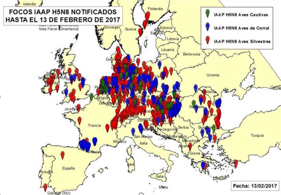 A pesar de ello han continuado presentándose casos de influenza aviar en el Congo, Holanda, Isla de Jeju, Corea del Sur, Zimbabue, Bélgica, Luxemburgo, Francia, por virus H5N5, H5N8, H5N6, y H5N1 en diferentes especies de aves con miles de aves muertas y/o eliminadas, y continúan los casos en humanos en la China por H7N9.
