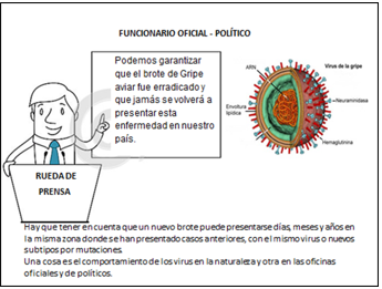 - Muchos funcionarios oficiales, empresarios y dirigentes avícolas, médicos humanos y veterinarios, salubristas y otros profesionales de la salud, residentes en una nación “libre” de esta enfermedad se expresan con desdén y apatía manifestando: “No debemos preocuparnos ese es un problema de la avicultura asiática”, toda la vida nuestro país ha sido visitado por miles de aves migratorias y hasta el presente no han mostrado ningún peligro para nuestra avicultura.