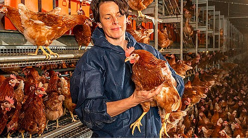 „Con ello alimento a mis gallinas adaptándome aún más a sus necesidades. Para el bienestar de los animales, y también económicamente, esto es una mejora absoluta», confirma Stefanie Meiners-Funke.