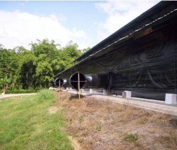 De igual manera, en este tipo de galpones, se controla temperatura ambiente por medio de ventilación mecanizada. En este sentido, lo más común es utilizar una ventilación de túnel similar a la utilizada en pollos de engorde, con paneles húmedos en el punto de ingreso del aire externo y, un conjunto de extractores situados en el extremo opuesto del galpón.