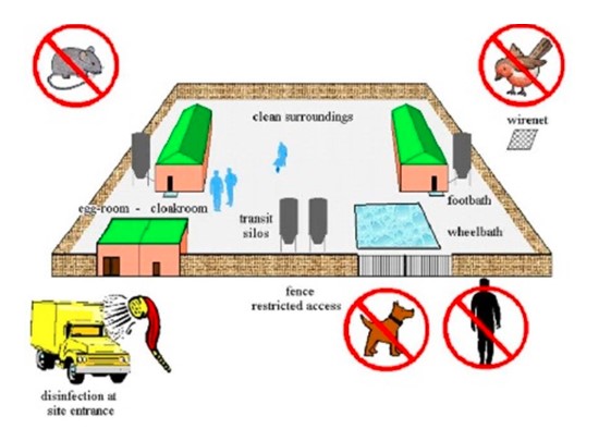 Fig. 1: Revisar las áreas limpias y sucias en la granja y en cada galpón