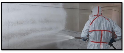 Aplicación del desinfectante: Se debe calcular la superficie sumando todos los elementos del interior del espacio que necesitamos desinfectar.