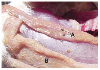 “You may have a large number of flocks affected before you realize you are losing feed efficiency and growth unless you conduct regular weekly posting sessions, which most producers do not,” he says. Hofacre likewise expects to see more acute and subclinical NE as the industry backs off the use of in-feed antibiotics. He cites the experience in Europe, where the poultry industry has seen a huge surge of NE in broilers since AGPs were banned by regulators. “In the US, the reduction in AGPs is being driven by consumers, not by regulators as it is in Europe. I don’t know that we’ll go to zero AGPs, but I think the US poultry industry will go pretty low. Consumers don’t want AGPs used,” he says. Causes of NE C. perfringens is a gram-positive, anaerobic bacterium that is normally found in the environment and gut of healthy birds. Although NE is caused by C. perfringens, not all C. perfringens causes NE, Hofacre points out. A toxic strain of the pathogen must be present. Most occurrences of NE are thought to be caused by the alpha (á-toxin) produced by C. perfringens. A toxic strain of C. perfringens takes hold when the bird’s intestines are damaged by other diseases, particularly coccidiosis, he says. “With intestinal damage, the normal balance of bacteria is disrupted and mucus production increases. That’s how the intestines respond, by coating their surface. But mucus also provides a food source for C. perfringens. The toxin utilizes mucus and further damages the intestines, and you get a damaging cycle,” Hofacre says. Recent evidence about the impact of coccidiosis on the development of NE comes from a study that was presented in July 2006 at the annual conference of the American Association of Avian Pathologists. It demonstrates that both coccidial pathogens Eimeria acervulina and Eimeria maxima cause enough intestinal damage to allow C. perfringens to proliferate. In the study, conducted by Dr. Greg Mathis of Southern Poultry Research, Athens, Georgia with co-investigator Hofacre, birds were inoculated with the Eimeria species then challenged with C. perfringens. Those with Eimeria infections were more susceptible to the development of NE compared to birds without coccidial infections. Both Eimeria species were associated with an increased risk for NE, but the risk was greatest with E. maxima. Davis says that another contributor to NE is animal byproducts. “We have conducted research showing there are literally tens of thousands of clostridium spores per gram in some animal byproducts found in blends. In one study we did, fish meal in the feed was heavily contaminated with C. perfringens. We’ve also found the pathogen in bone meal. So, in some cases, flocks are getting clostridium from their food.” There is a wrongful perception that chemical anticoccidials and coccidiosis vaccination cause NE, he says. “In fact, the opposite is true. These products in no way cause NE. They just don’t have direct efficacy against bacterium. There’s no secondary antibiotic effect,” he says. A clinical impression No tests for C. perfringens are currently available, but researchers are hoping to change that. Investigators in Europe, for instance, have been working on a blood test that would show antibodies to toxic C. perfringens. Hofacre cautions that there is also no way to predict which farms are at increased risk for NE based on litter samples. “Culturing C. perfringens from the litter is an exercise in futility,” he explains, because there is no way to tell if any clostridium that is isolated has the gene needed to produce the toxin that results in NE. In other words, “You can have a high level of clostridium in the environment, but that doesn’t prove it is causing disease,” he says. The lack of tests for identification of toxic C. perfringens means that diagnosis of subclinical NE depends on an astute clinician. “It’s a clinical impression among those experienced with the disease,” says Hofacre. “There’s a certain amount of enteritis, but it never gets severe enough to call it clinical NE. The term subclinical enteritis really reflects the severity of NE.” Recently he visited a farm with enteritis and liver lesions that appeared to be caused by NE. “This farm is on the tip of flipping over into acute NE, but I won’t allow birds to go untreated just to prove I’m right. I think this happens a lot.” It was a conventional flock and he suspects that their anticoccidial was beginning to lose efficacy and that too much coccidia was leaking through, Hofacre says. Says Gustin, “The diagnosis of subclinical NE relies heavily on the quality and frequency of technical service by those with the ability to diagnosis subclinical NE. Routine posting sessions conducted by individuals with special training in diagnosis of the disease are needed, and performance data must be correlated to necropsy findings, especially during times that coccidiosis programs are transitioning.” Davis adds, “To accurately diagnosis subclinical NE, I think it’s very important to get anaerobic cultures of very fresh, dead birds by euthanizing if necessary.” Once familiar with the disease and the intestinal lesions that characterize NE, says Hofacre, subclinical NE can be diagnosed upon necropsy. The small intestinal surface is covered with mucus and may be thick and rough. The liver may be firm and is a dark, mahogany color. Hofacre uses a scoring system with a range of zero to three for assessing necrotic enteritis, he says. Zero would be no intestinal lesions, one would be a mucus-covered intestine, characteristic of subclinical NE, while scores of two to three would indicate clinical NE because the intestines would be obviously diseased with bloody exudate in birds about to die or that died.