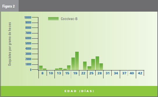 Figura 2. El nivel máximo (o pico) de ooquistes en las parvadas vacunadas con Coccivac-B e