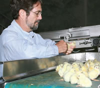 In drug-free birds, Fieldale has been relying primarily on biologicals to bolster immunity, both at the maternal level and at the individual broiler level. In all of their birds — both drug-free and conventional — they use commercial killed vaccines to control IBD. In their breeder hens (which supply chicks for both the drug-free and the conventional brands), they augment that regimen with autogenous bursal vaccines. Smith explains that the bursal program in the hens is aimed not at controlling IBD in the hens but, rather, protecting their broiler progeny. They have also been experimenting with some of the new recombinant vaccines derived from turkey herpesvirus — so-called HVT-vectored vaccines — to combat infectious laryngotracheitis and IBD. Coccidiosis is another major concern for Fieldale. “It’s something we have to deal with on nearly a constant basis because we know that even subclinical levels impact the growth of our birds,” Smith says. Fieldale’s approach to control includes vaccinating against coccidiosis and, in conventional birds, vaccination in rotation with judicious use of ionophores. During winter, when cold and dampness tend to put extra stress on birds, they shuttle in synthetic or chemical anticoccidials plus ionophores. For the remainder of the year they tend to run ionophores only but rotate them as needed. The impact of late coccidiosis challengeRecent studies conducted by veteran poultry researcher Dr. Robert Teeter, a nutritionist at Oklahoma State University, show that although coccidiosis is costly at any time in the broiler’s life, it is most costly when it occurs late in the production cycle, when more money has been spent on feeding and housing the bird.Smith has made similar observations, though he arrived at that conclusion from different experience. When the anticoccidial diclazuril became available to the US poultry industry 9 years ago, it had a dramatic effect — not just on coccidiosis but also in opening everyone’s eyes as to how costly subclinical coccidiosis can be. The added control of the new anticoccidial also helped improve feed-conversion rates. “Frankly, it was shocking to a lot of us,” Smith says. He points out, however, that diclazuril, like other anticoccidials, eventually ran up against problems with resistance, so Fieldale and other growers had to scale back on its use. Still, their brief affair with diclazuril demonstrated to Fieldale and to other producers that they could be more diligent controlling coccidiosis and thus ensure better control late in the growing cycle. “That’s where coccidiosis vaccine comes in,” Smith says. “It allows you to rest the drug for a period of time. Research has shown that helps you restore some drug sensitivity.” Maintaining flexibility is key![]() "There are no asterisks on our birds." DR. DAVID WICKER Smith says that in their conventionally
