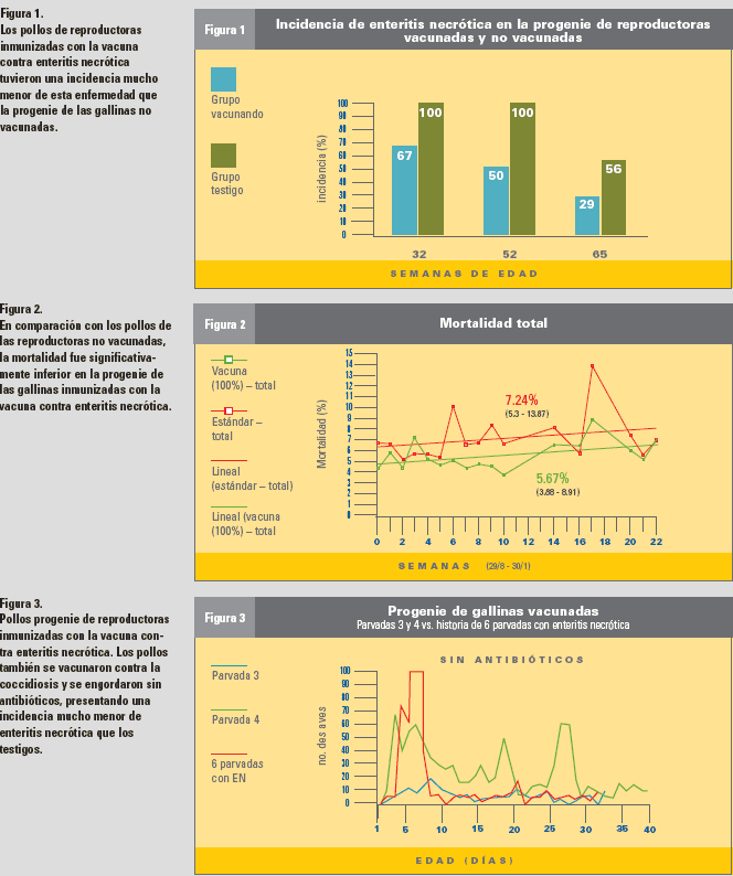 vacuna produce inmunidad en las reproductoras, misma que es trasferida a la progenie como inmunidad materna. Es una buena manera de que los avicultores se aseguren de que la enteritis necrótica no interfiera con el buen desempeño de sus pollos", explicó.