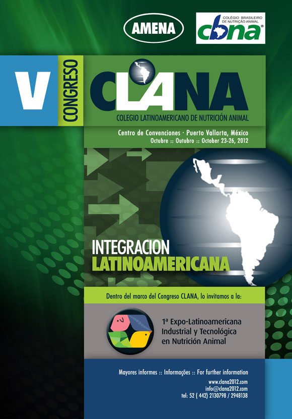 21 September 2012MÉXICO- El V Congreso del Colegio Latinoamericano de Nutrición Animal – CLANA – tomará lugar en Puerto Vallarta del 23 al 26 de octubre de 2012. Paralelo al V CLANA tendrá lugar la I Expo Latinoamericana Industrial y Tecnológica en Nutrición Animal.