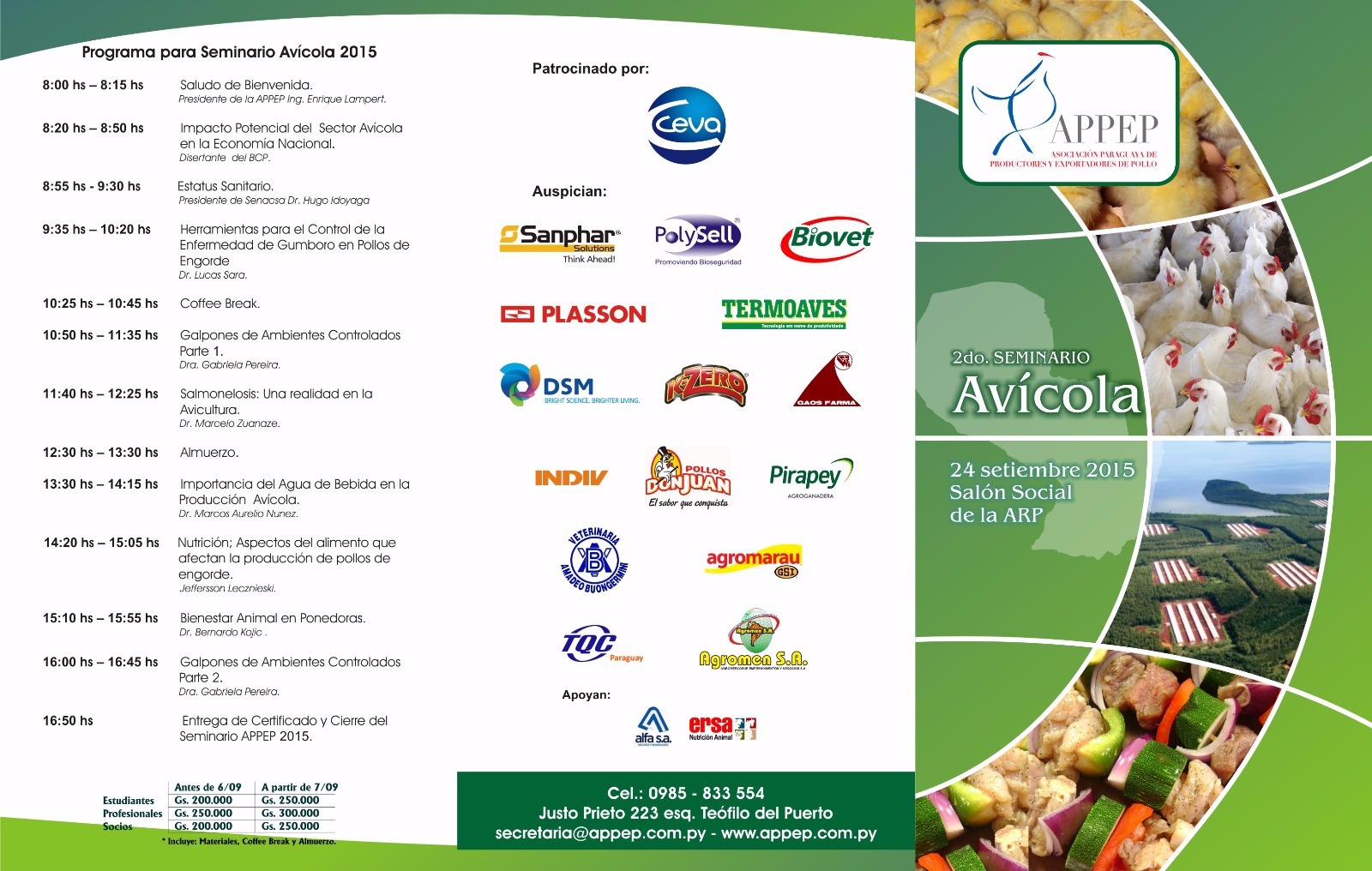 03 September 2015PARAGUAY - La Asociación Paraguaya de Productores y Exportadores de Pollo (APPEP) celebrará el 2º Seminario Avícola el próximos 24 de septiembre, el Salón Social de la ARP.