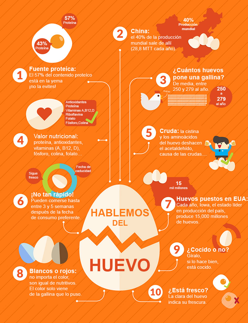 09 October 2015MUNDO - Hoy 9 de octubre se celebra el Día Mundial del Huevo 2015, como se hace desde hace años cada segundo viernes de octubre. Desde El Sitio Avícola hemos querido celebrarlo con todos ustedes dejándoles algunos datos curiosos sobre este producto tan completo. A continuación, les presentamos una infografía con diez curiosidades sobre el huevo. ¡Feliz Día Mundial del Huevo!