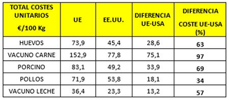 Esta diferencia de costes hace imposible para los ganaderos comunitarios competir en un futuro mercado abierto que mantenga dos modelos regulatorios tan diferentes, ya que beneficia a las producciones más baratas, que son las de EE.UU.