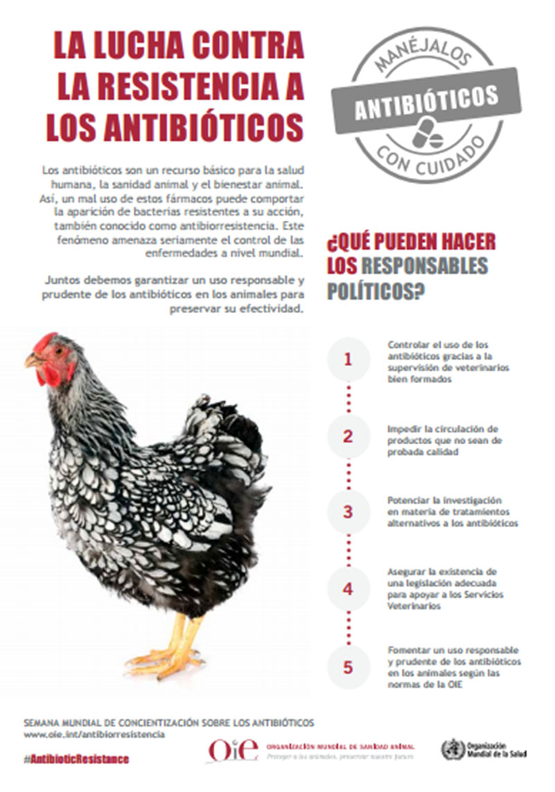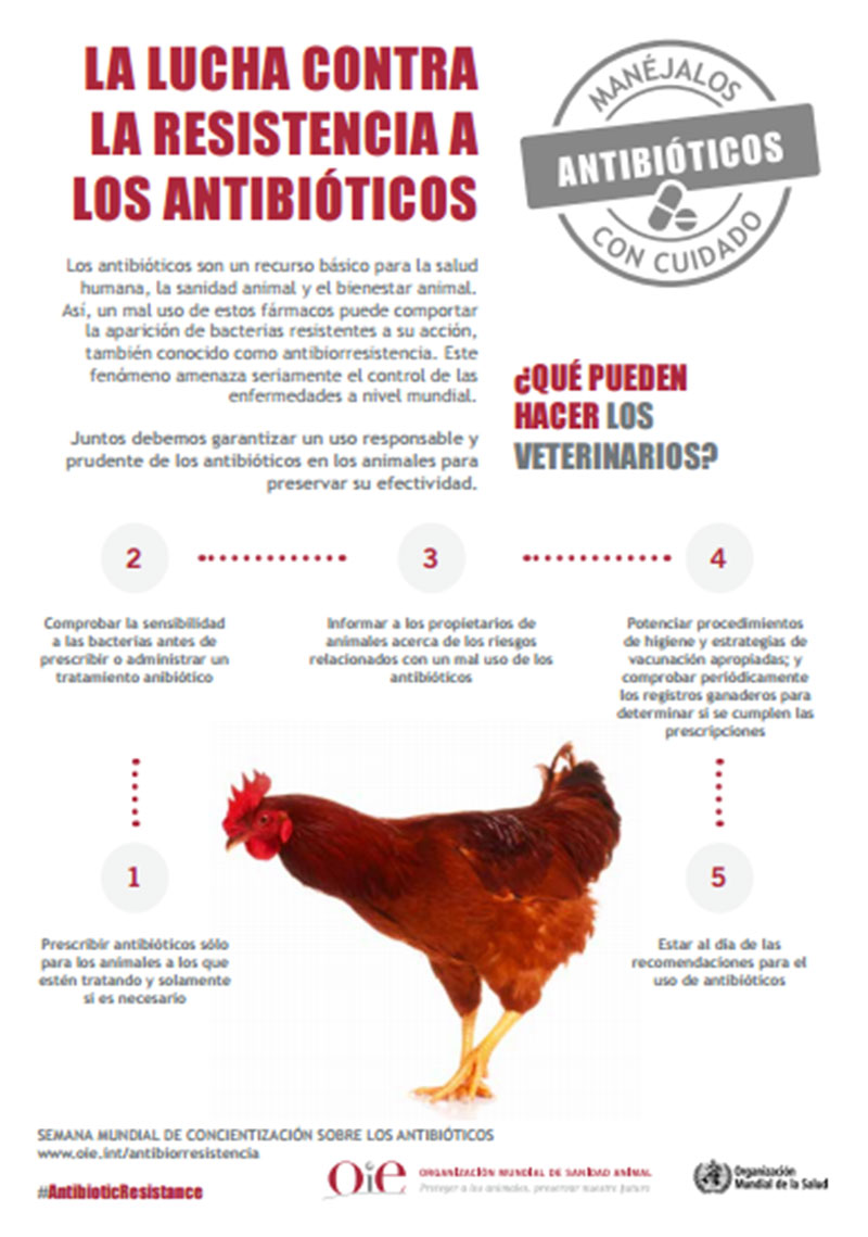 Entre el 14 y el 20 de noviembre se está celebrando la Semana Mundial de Sensibilización sobre los Antibióticos. De manera conjunta, y basado en el concepto de Una Salud, la OIE, la OMS y la FAO pusieron en marcha esta iniciativa en 2015 para concienciar sobre los peligros de la resistencia a los antibióticos y a promover buenas prácticas entre los ganaderos, veterinarios y profesionales de la sanidad humana.