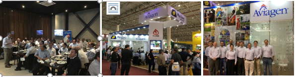 Izquierda: Lauandos es anfitrión de la cena de clientes; centro: stand Aviagen recibe alto tráfico; derecha: equipo Aviagen en SIAVS