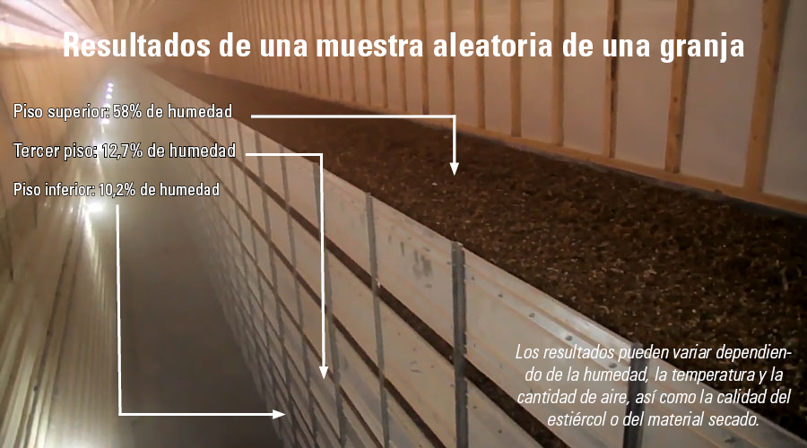 La técnica más sencilla y eficiente desde el punto de vista energético (y recomendada por el gobierno neerlandés) es el secado de estiércol: Con una ventilación adecuada, el aire cálido de la nave seca el estiércol.