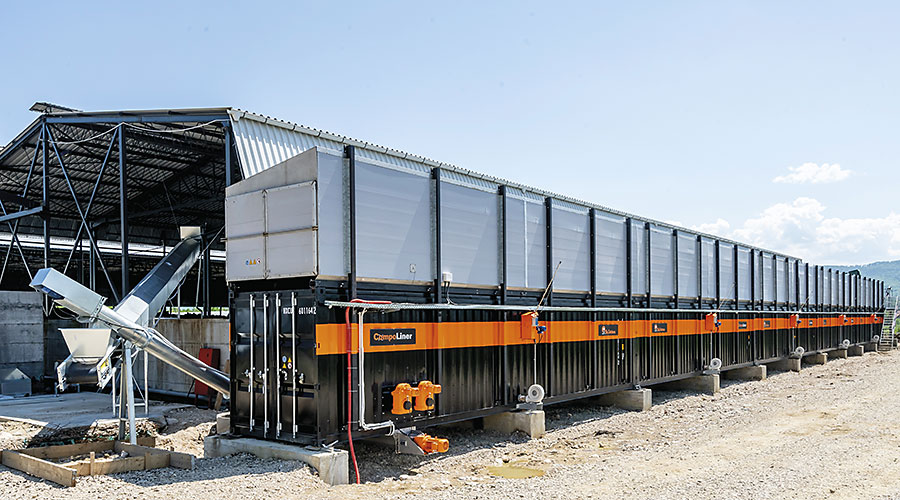 Para evitar las desventajas, Big Dutchman ha desarrollado un sistema de compostaje innovador llamado CompoLiner. Es fácil de manejar, dispone de un control de proceso completamente automático y se puede adaptar fácilmente a la cantidad de material que se composta.