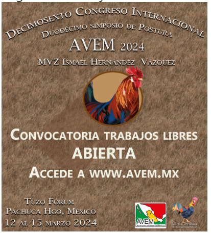 18 December 2023MÉXICO – El Decimosexto Congreso Internacional AVEM 2024 "MVZ Ismael Hernández Vázquez" se llevará a cabo en Pachuca, Hidalgo, México, del 12 al 15 de marzo del 2024. El evento será presencial.
