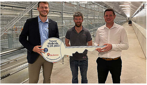 22 December 2023MUNDO - Trevor McBride, cliente de Big Dutchman de la región irlandesa de County, ha decidido ampliar su instalación de manejo de gallinas ponedoras. Se comenzó con una nueva nave para la cría-recría de pollitas; las primeras aves jóvenes ya se han instalado. La llamativa nueva construcción es la primera nave de cría alternativa que Big Dutchman ha equipado en la República Irlandesa (hay otra situada en Irlanda del Norte). Les siguen dos naves de modernos aviarios para el manejo en suelo. Uno de ellos ya está en fase de construcción, el segundo comenzará a funcionar, seguramente, en el año 2024.