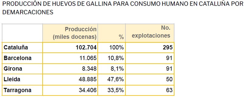 ● Producción de huevos de gallina para consumo humano. Año 2022. Generalitat de Catalunya. Departament d'Acció Climàtica, Alimentació i Agenda Rural.
