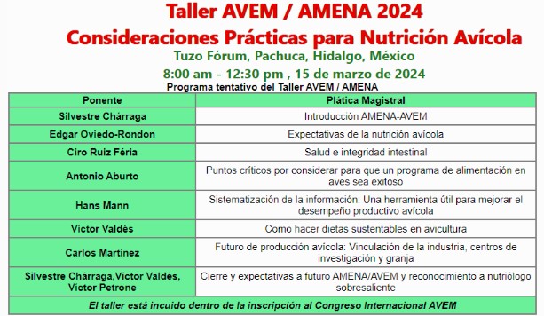 Taller AVEM / AMENA: Nutrición Avícola. Clica aquí